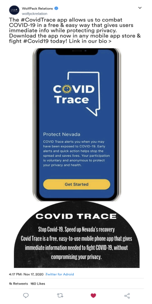 Encourage safer behavior among UNR students by promoting mask-wearing, social distancing, and responsible decision-making during the COVID-19 outbreak.