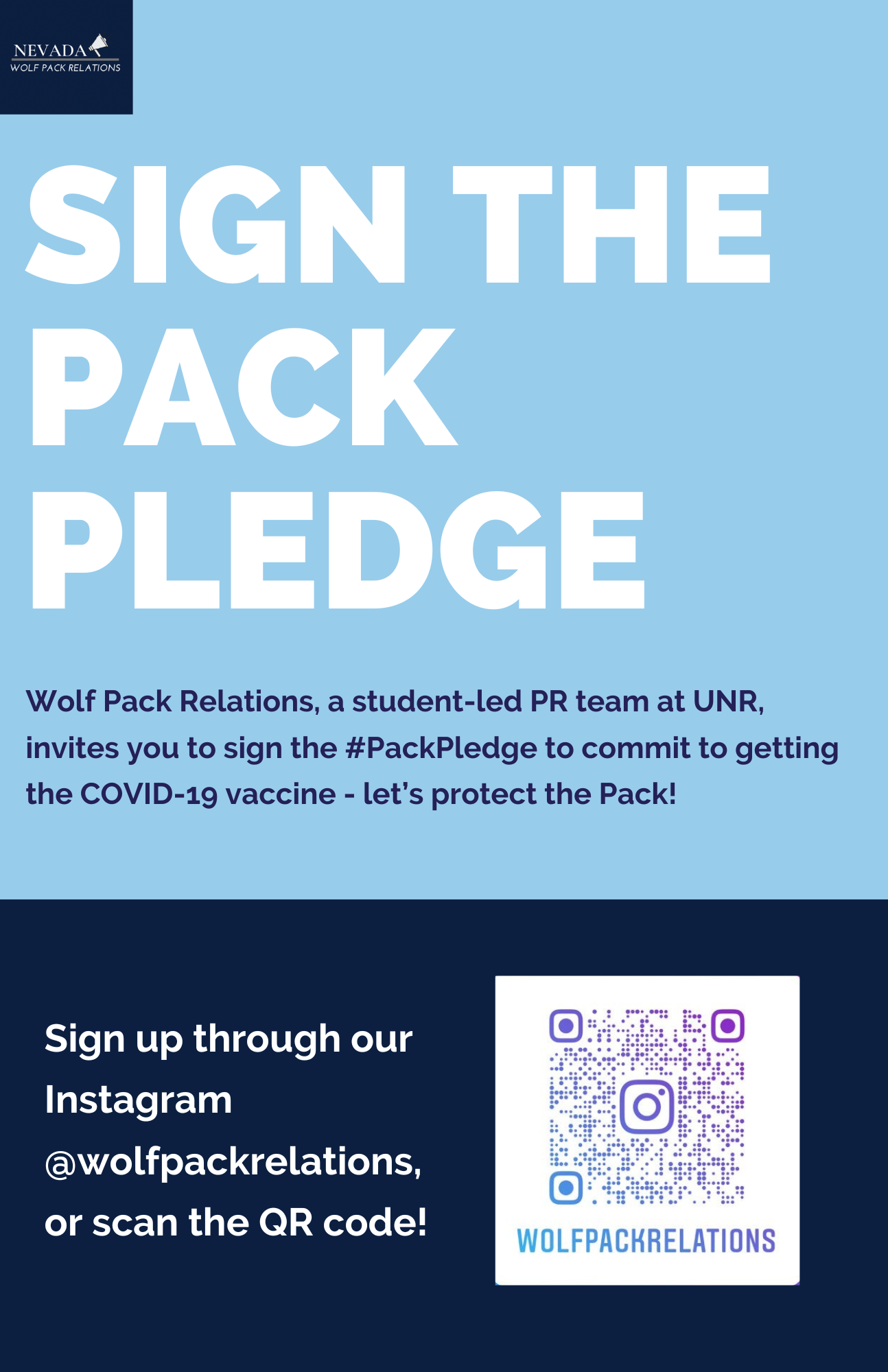 As the Graphic Designer for Wolf Pack Relations, a student-led team at the University of Nevada, Reno, I worked with fellow Reynolds School of Journalism students and faculty to develop and implement #DoItFor2021, a social media campaign encouraging UNR students to reduce COVID-19 transmission. Our team launched the initiative in response to ongoing large gatherings on and around campus and the rising number of cases within the student community.
